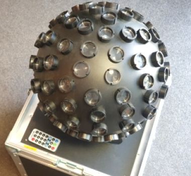 Integriertes Mikrofon zur Musiksteuerung, Konfiguration mit 4 Tasten, Inkl. IR-Fernbedienung/ Montagebügel/ Flightcase