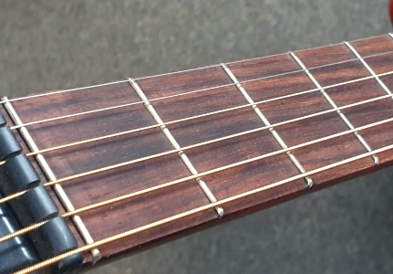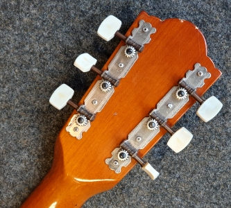 Decke Fichte, Boden laminiert, Hals Ahorn geschraubt/ Griffbrett Palisander/ Mensur 630mm/ Sattel 43mm, Nullbund, Trussrod, ausgewölbter Boden f. mehr Sound, Bj. 1972, überholt u. sehr gut spielbar