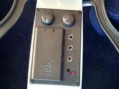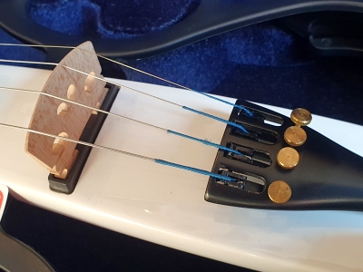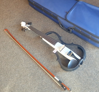 Silent Violin: E-Geige ohne Korpus, Preamp mit Phone u. Line Output, Mic In, Volume + Tone Regler, 9V Batterieblock, 4 Feinstimmer, Kinnhalter, pianoweiß, Zubehör: Case/ Bogen/ Kopfhörer/ Kolofon/ Kabel/ Lehrbuch/ Übungs-CD..., 5 Jahre alt, ungespielt