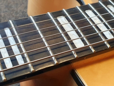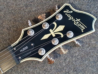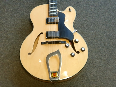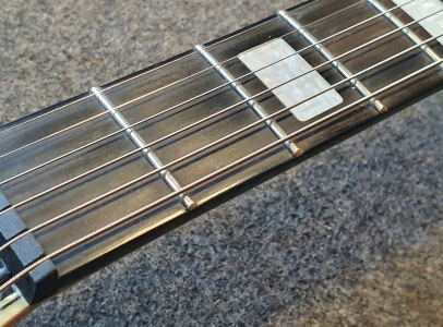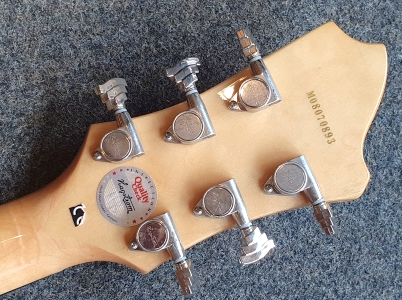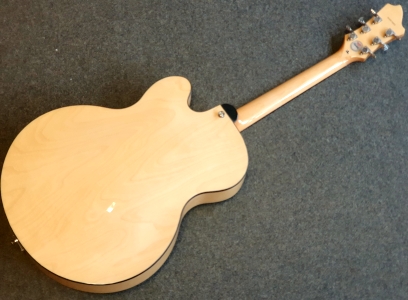Decke: Ahorn drucklaminiert, Korpus: Ahorn laminiert, Hals: Kanadischer Ahorn, eingeleimter Hals, lange Zapfenverbindung/ 21 Jumbo Frets/ 43mm Sattelbreite, 2 HJ50 Humbucker, sehr guter Zustand, inkl. Koffer