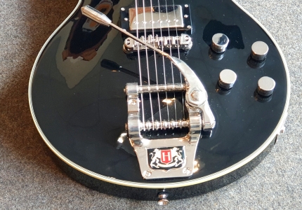 Grundtyp Les Paul mit zusätzl. Höhenfilter-Toggle & Bigsby Tremolo, typisches massives Hagströmdesign, sehr guter Zustand