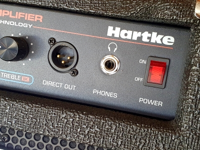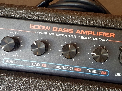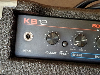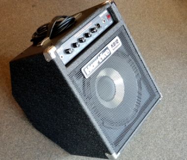 kleiner leichter Basscombo im Kickback- Bassreflex- Gehäuse, 500W peak, 4 band Klangreglung: Shape/ Bass/ Middle/ Treble- In/ Out Schalter, Phones- u. D.I.- Out, 12" Aluminiumcoated Neodymium- Speaker, 12,8 kg, sehr guter Zustand