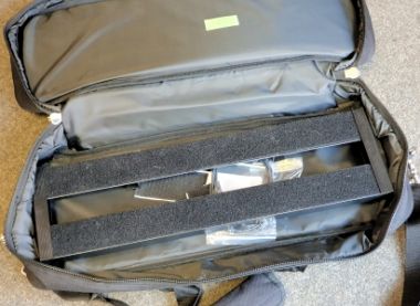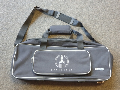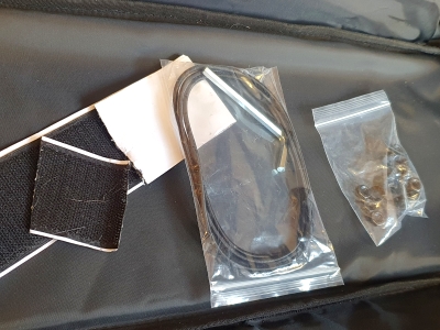 Pedalboard aus leichtem Aluprofil, Oberseite mit Flausch beklebt, unterhalb befinden sich Haken um das Netzteil zu befestigen, Zubehör: Gummies, Hakenklebeband, Schrauben, sehr guter Zustand