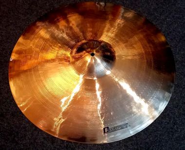 Bronzebecken 57cm Durchmesser, gut verarbeitet, Klang: mit Mallet gongartig/ mit Stick dunkle Glocke/ Crash breit u. laut, neu