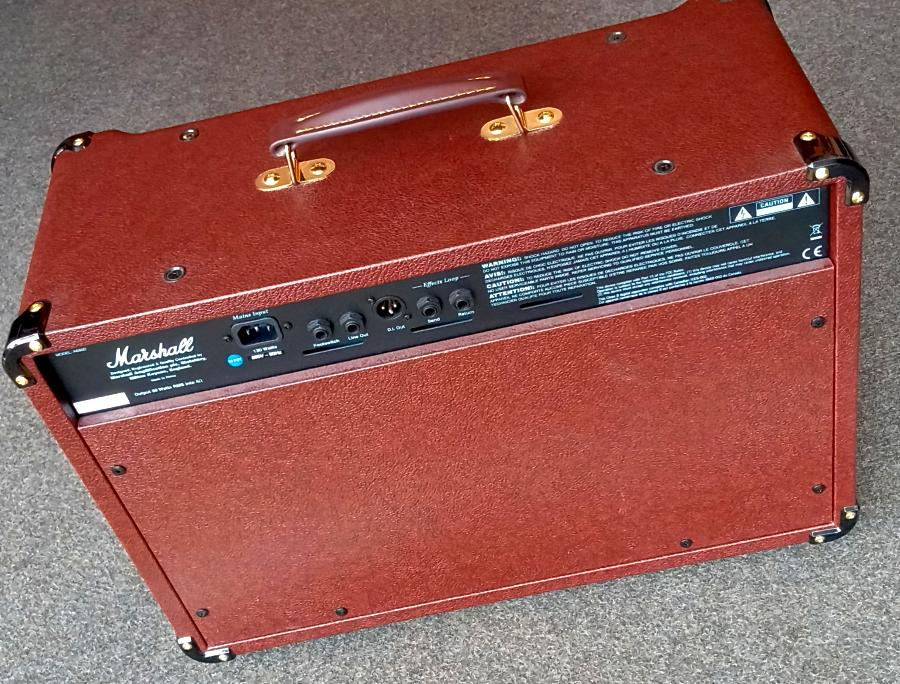 zweikanaliger 50W Akustikamp mit je Lo/Hi Klangreglung + Effekte Chorus/ Reverb + Feedbackkontrolle, FX Loop, Chinch Input, DI-Out/ Line Out, Footswitchbuchse, 2x8" Speaker, XLR Mikrofoninput m. Phantompower, sehr guter Zustand